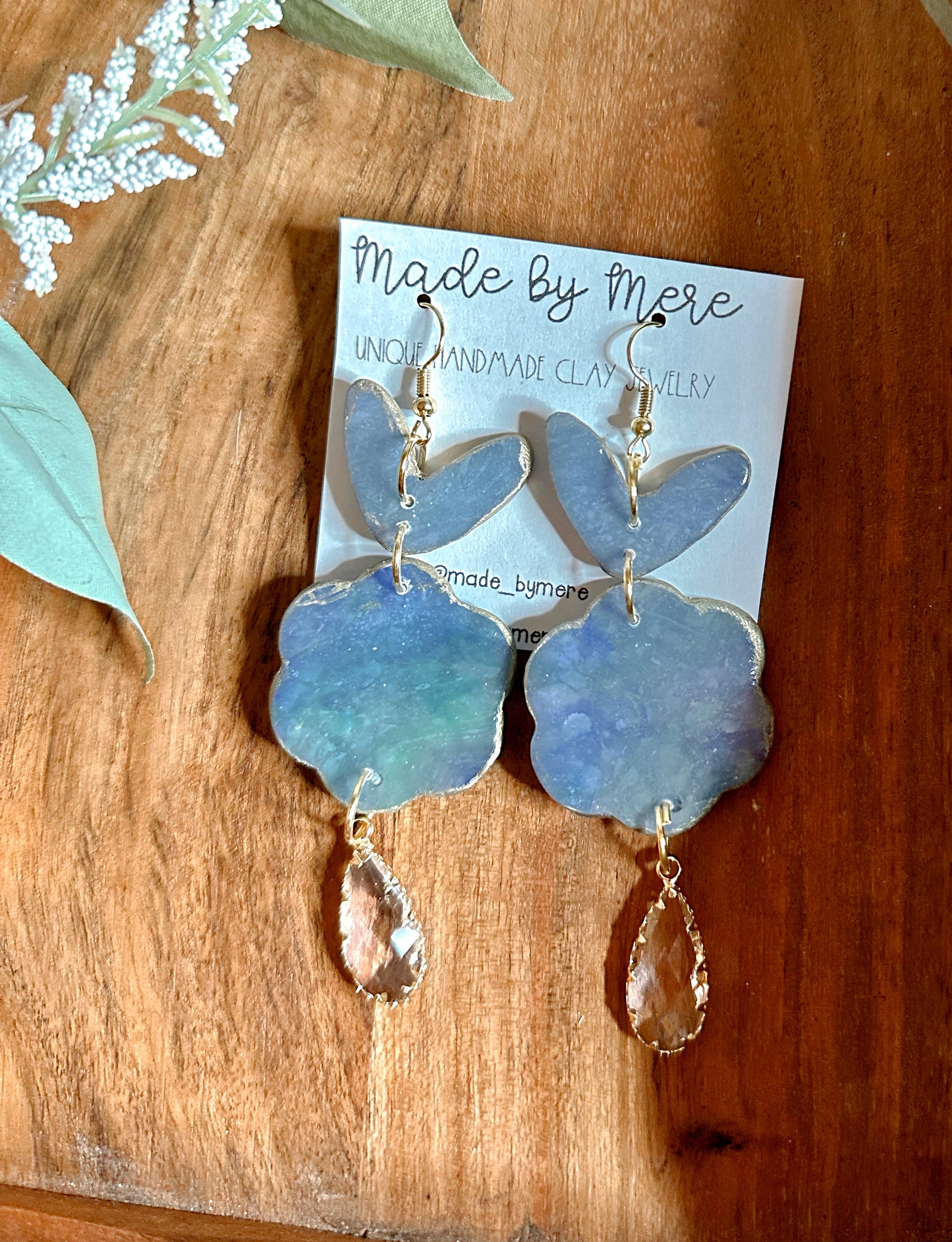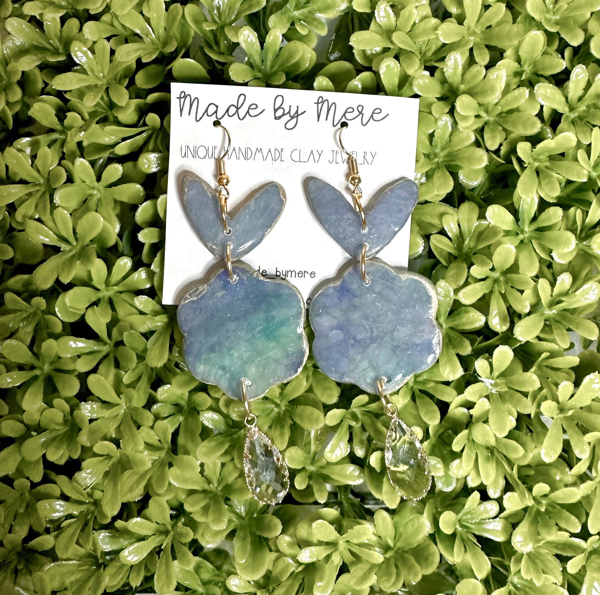 Handmade with polymer clay, resin, 18k gold plated metal, and CZ charms