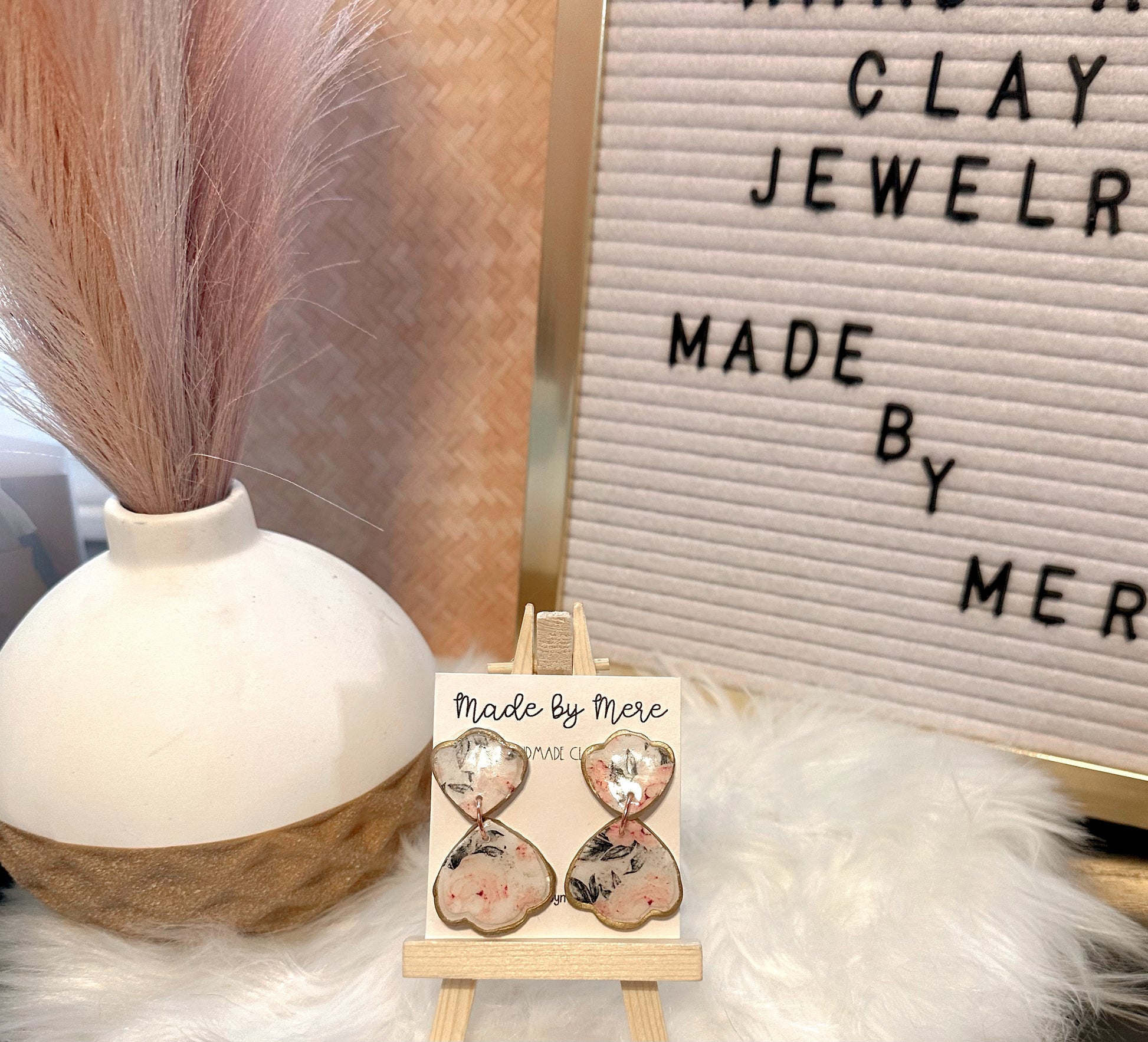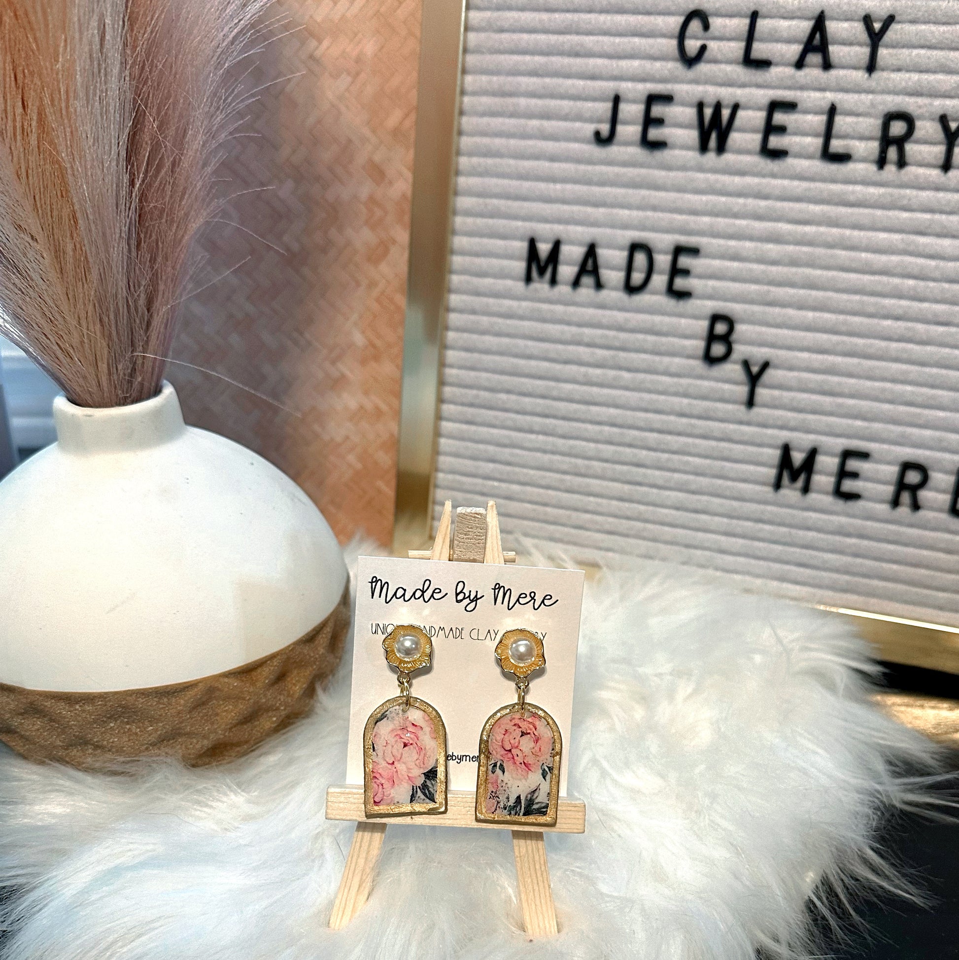 Handmade with polymer clay, resin, and 18k Gold plated metal.