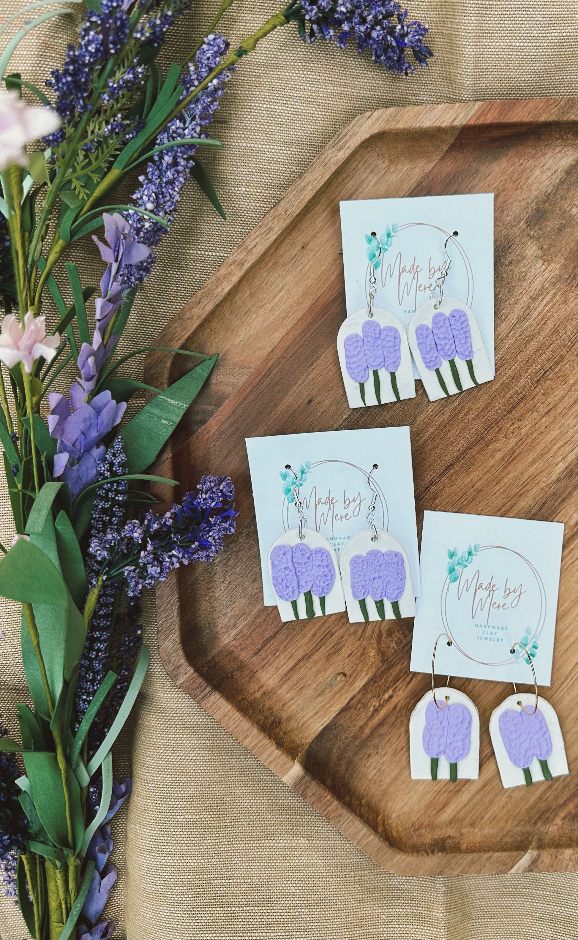 Handmade with polymer clay & stainless steel silver hooks.