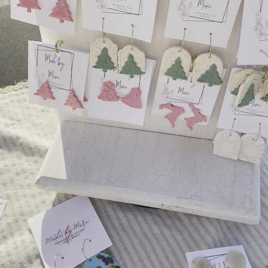 Each pair varies. Usually 1-2.5 inches long, and 1 inch wide approximately.